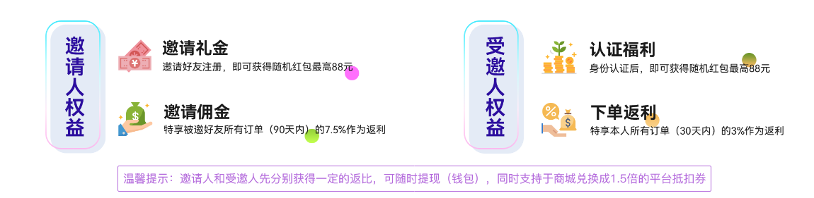 活動期間新注冊用戶可獲得一次抽獎機(jī)會(100%中獎),手機(jī)/京東卡/紅包...等你來領(lǐng)!新/老用戶均可通過邀好友注冊,獲得更多抽獎機(jī)會,并同享邀請權(quán)益(共享訂單10.5%返利)。