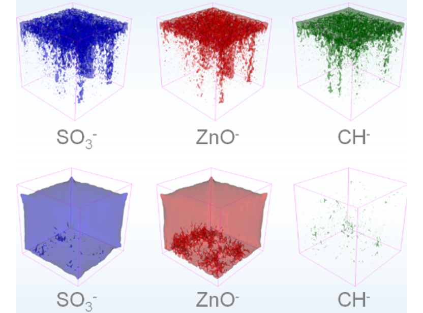 作者利用TOF-SIMS對鋅負(fù)極表面的SEI膜成分進(jìn)行了研究,揭示了其厚度,化學(xué)組成和空間分布。