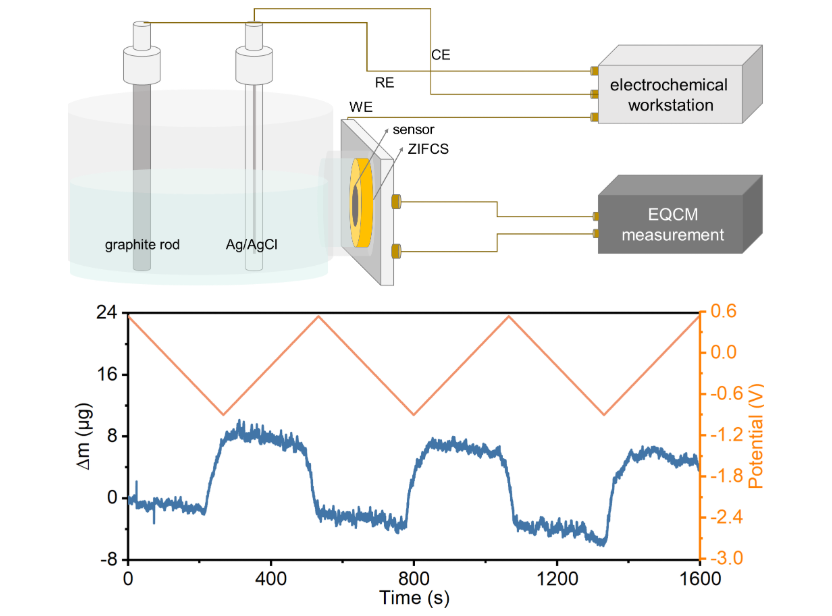 作者利用電化學(xué)石英晶體微晶天平(EQCM)監(jiān)測了硫電極在充放電時的質(zhì)量變化,一方面證實(shí)了點(diǎn)電化學(xué)反應(yīng)的可逆發(fā)生,另一方面又發(fā)現(xiàn)了循環(huán)過程中電極物質(zhì)的持續(xù)損失。